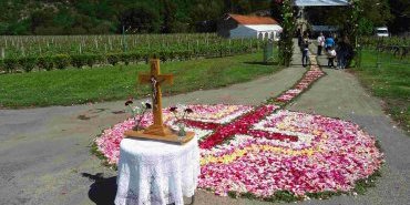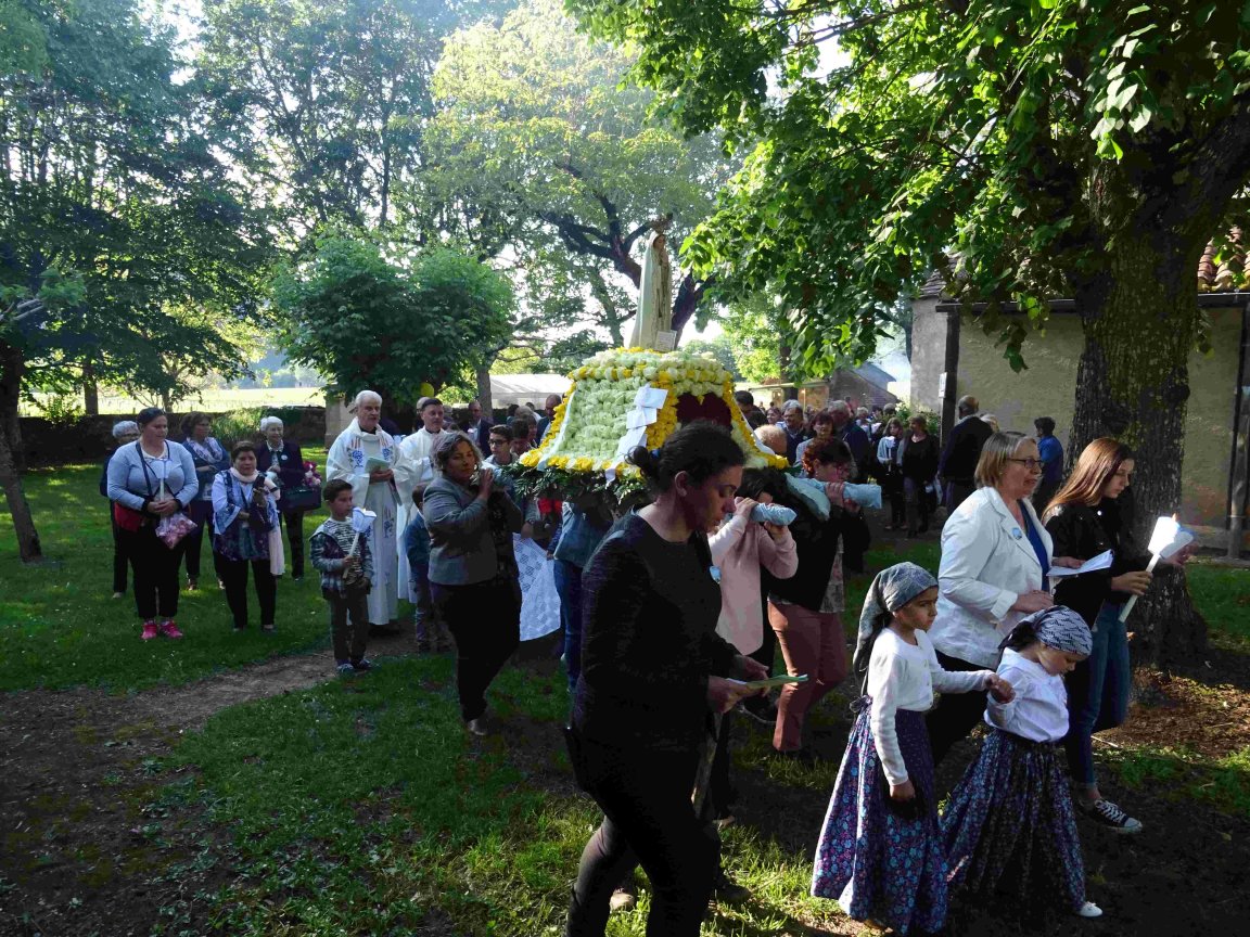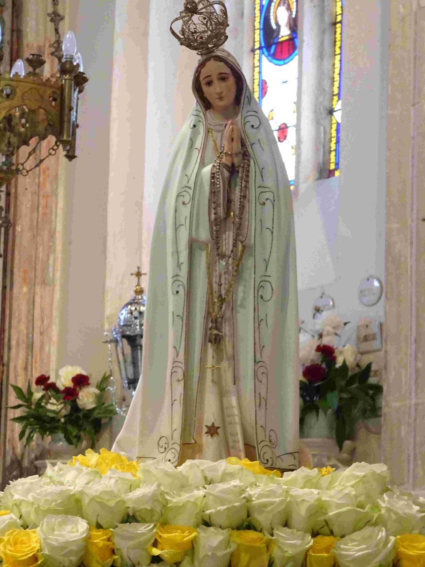 Cette année le soleil était au rendez-vous dans l’écrin de verdure de Notre dame de l’ile pour fêter les apparitions de Notre dame De Fatima avec les 40 ans de ‘’ l’Associaçäo Nossa Senhora de Fatima. ’’ Et nous étions nombreux en union avec la communauté portugaise à chanter et prier Notre Dame de Fatima . les pères Shane et Jean-Marie, présidaient cette messe suivie de la procession en l’honneur de la vierge sur un chemin parsemé de pétales de roses.. Une chorale venue du Portugal animait cette célébration . Leurs voix du sud, leurs chants et la ferveur des prières de l’assemblée nous amenaient à communier et à partager leur élan de foi :