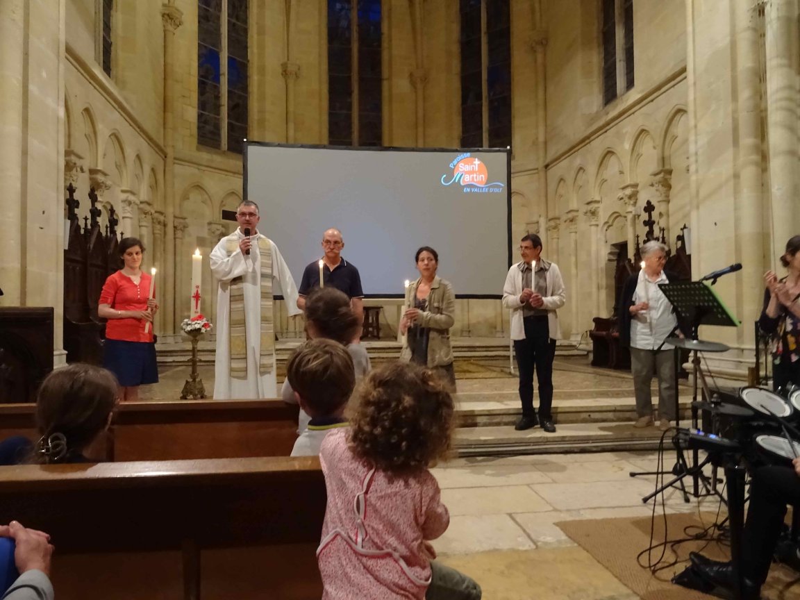 Le samedi 9 juin, les paroissiens étaient conviés à une veillée pour prier et pour fêter la création de la nouvelle paroisse. Cette veillée était animée par le groupe Nomade qui a porté la soirée dans la prière et la joie à l’aide de ses chants.